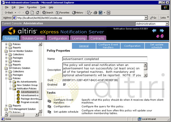 Screenshot of Altiris Notification